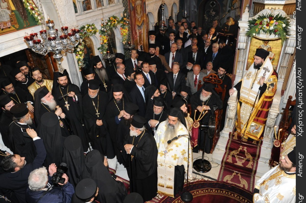 Η ατμόσφαιρα ήταν πανηγυρική. Το πλήθος των επίσημων που συνέρρευσε για το γεγονός δεν θύμιζε μια απλή ενθρόνιση Μητροπολίτη. Το πρόσωπο του νέου Ποιμενάρχη της επαρχίας της προσφυγιάς της Μικρασίας συγκέντρωσε ανθρώπους από διαφορετικούς θρησκευτικούς, ιδεολογικούς, πολιτικούς, οικονομικούς και κοινωνικούς χώρους.
