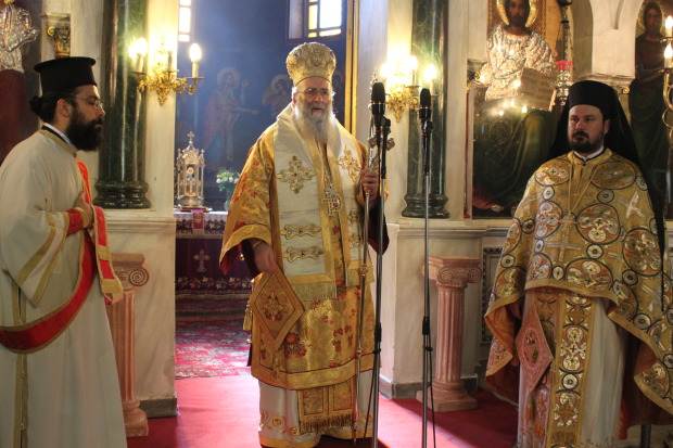 Της Θείας Λειτουργίας προεξήρχε ο Σεβασμιώτατος Μητροπολίτης Προικοννήσου Ιωσήφ. ο οποίος στην ομιλία του, αφού ευχαρίστησε τον προϊστάμενο του Ναού π. Χριστόδουλο Κατσαντωνόπουλο, αναφέρθηκε στη ζωή του Αγίου Νεκταρίου. Τον Μεγάλο αυτό Θεολόγο, Μέγα Πατέρα της Εκκλησίας και σπουδαίο συγγραφέα, που μετέφερε με τον λόγο του το Ευαγγέλιο στη γλώσσα της εποχής μας.