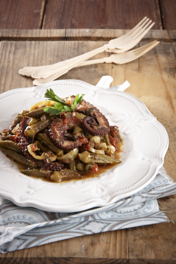 Οι κρητικοί μαγειρεύουν τις μπάμιες με ροφό, αλλού στην Ελλάδα θα τις βρεις με πεταλίδες ή καλαμαράκια. Γεγονός είναι, πως η μπάμια -φρέσκια ή κατεψυγμένη- παντρεύεται ιδανικά με τις θαλασσινές γεύσεις.