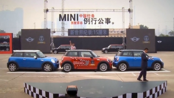 Ο Κινέζος οδηγός, έκανε το συνηθισμένο κόλπο που όλοι, σχεδόν, γνωρίζουμε, χρησιμοποιώντας το χειρόφρενο. Όμως το έκανε με τέτοιο τρόπο, που έφερε το μίνι κούπερ σε θέση στάθμευσης ανάμεσα σε δύο αυτοκίνητα.