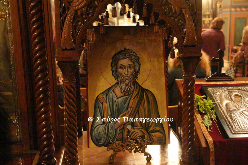 Με λαμπρότητα εορτάστηκε απόψε ο Μέγας Πανηγυρικός Εσπερινός του Αγίου Αποστόλου Ανδρέου του Πρωτοκλήτου, στο ομώνυμο παρεκκλήσι του Αγίου Ανδρέα στο Γηροκομείο Αθηνών.