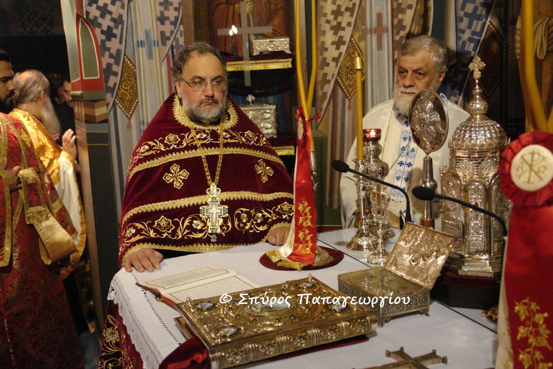 Στον Πανηγυρικό Εσπερινό χοροστάτησε ο Αρχιγραμματέας της Ιεράς Συνόδου της Εκκλησίας της Ελλάδος, Θεοφ. Επίσκοπος Μεθώνης Κλήμης, συμπααραστατούμενος από κληρικούς της Ιεράς Αρχιεπισκοπής Αθηνών.