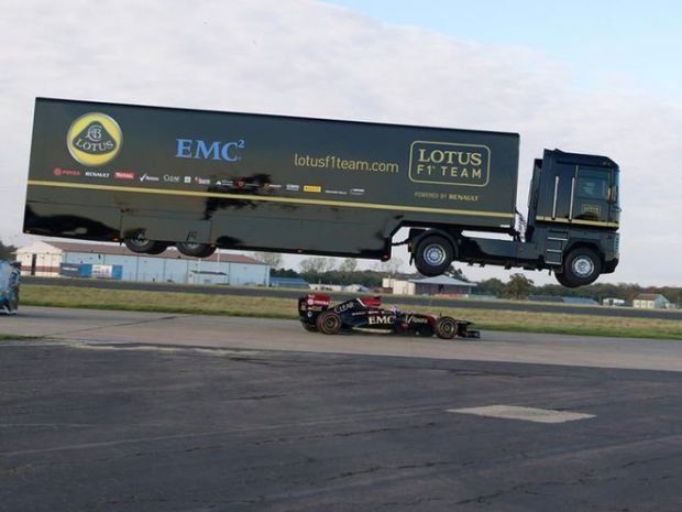 Η συνεργασία της εταιρία EMC με την Lotus F1, έφερε ένα ρεκόρ που καταγράφθηκε ήδη στο Βιβίο Γκίνες και αφορά στο άλμα ενός φορτηγού πάνω από ένα μονοθέσιο.