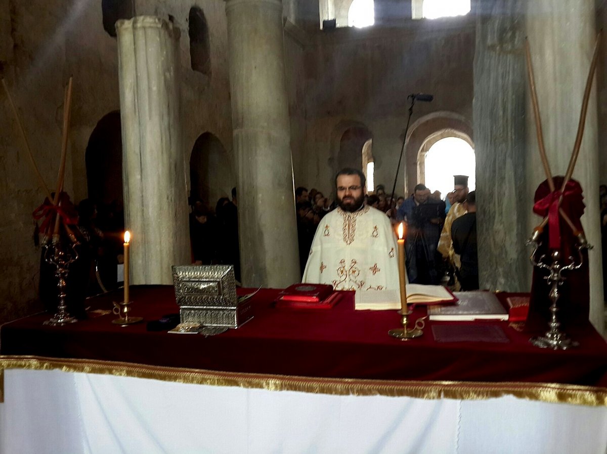 Στην ομιλία του ο οικείος Ποιμενάρχης προσφώνησε εόρτια στην ελληνική και στην τουρκική τους παρισταμένους σημειώνοντας το εξαιρετικό προνόμιο αυτής της γης η οποία δέχθηκε τη στοργή, τη μέριμνα αλλά και το σώμα του Αγίου ο οποίος συνεχώς φεύγει από τη θέση του πλησίον του Θρόνου του Θεού και με ράσο που στάζει θαλασσινό νερό, αφρό κυμάτων και δάκρυα γυρνά συνεχώς για να προφθάσει κάθε ανάγκη και κάθε πρόβλημα των ανθρώπων ενώ τους προσκάλεσε να μην κουραστούν να προσεύχονται και να ζητούν τη μεσιτεία του έχοντας όμως κατά νου πως ο Άγιος είναι Οικουμενικός και δίκαιος και γι’ αυτό ακούει μόνο στα αιτήματα που εκφράζονται με πίστη και ειλικρίνεια ψυχής. Στη συνέχεια ο ρωσσομαθής Μ. Σύγκελλος Αμβρόσιος διάβασε τον λόγο του Μητροπολίτου τον οποίον είχε μεταφράσει προηγουμένως για χάρη των Ρώσων προσκυνητών.