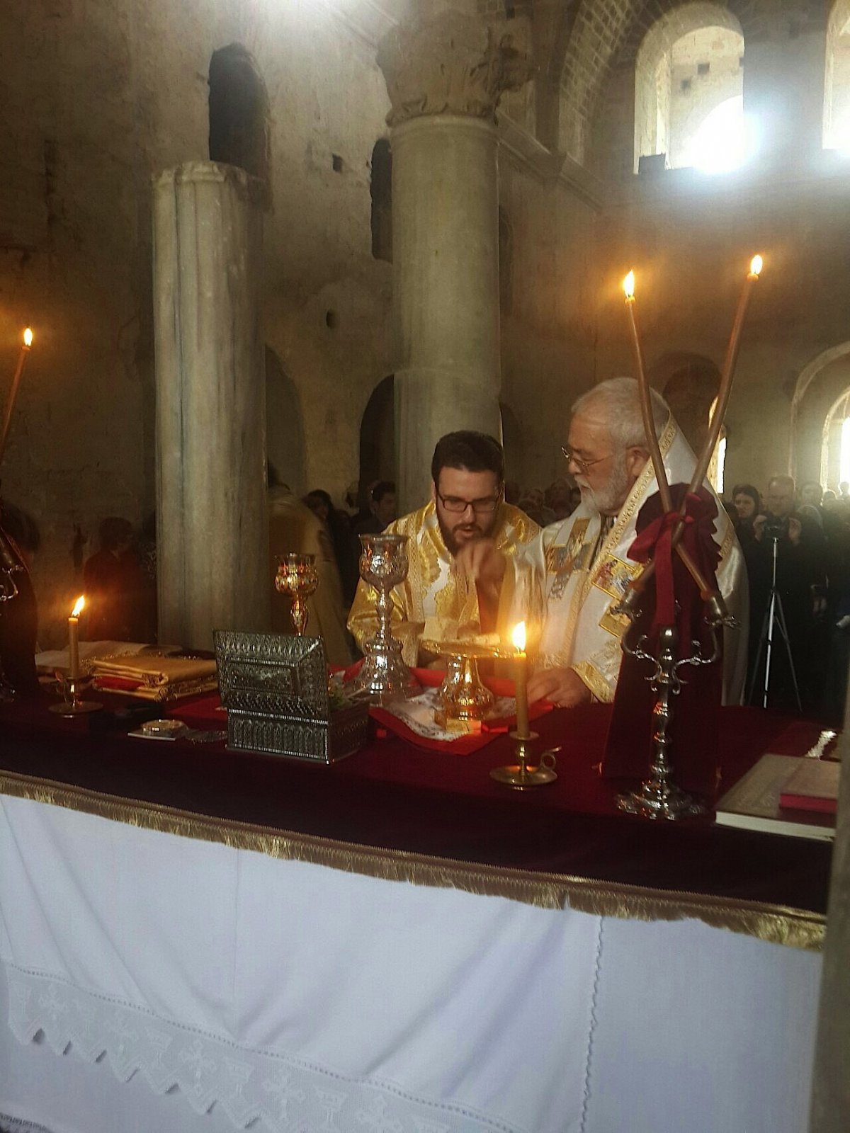 Της Θείας Λειτουργίας προεξήρχε ο Ποιμενάρχης και διάδοχος του Αγίου Μητροπολίτης Μύρων Χρυσόστομος συμπαραστατούμενος απο τους Μ. Σύγκελλο των Πατριαρχείων Αμβρόσιο, τον Αρχιμ. του Οικουμενικού Θρόνου και μόνιμο Εφημέριο της Σμύρνης Κύριλλο, τον Ιερομ. Τιμόθεο Βατοπαιδινό και Αρχιμ. Αλέξανδρο από την Ι.Μ. Νέας Ιωνίας ενώ διηκόνησε ο Πατριαρχικός Διάκονος Γρηγόριος. Παρέστησαν συμπροσευχόμενοι ο Γενικός Πρόξενος της Ελλάδος στη Σμύρνη, κ.Θεόδωρος Τσακίρης, και προσκυνητές από την Πόλη, την Αττάλεια, την Αλάγια αλλά και την Ελλάδα. Σύμφωνα με τα στοιχεία από τους υπευθύνους του Μουσείου της Βασιλικής του Αγίου Νικολάου στη Θεία Λειτουργία προσήλθαν περισσότερα από 550 πρόσωπα.
