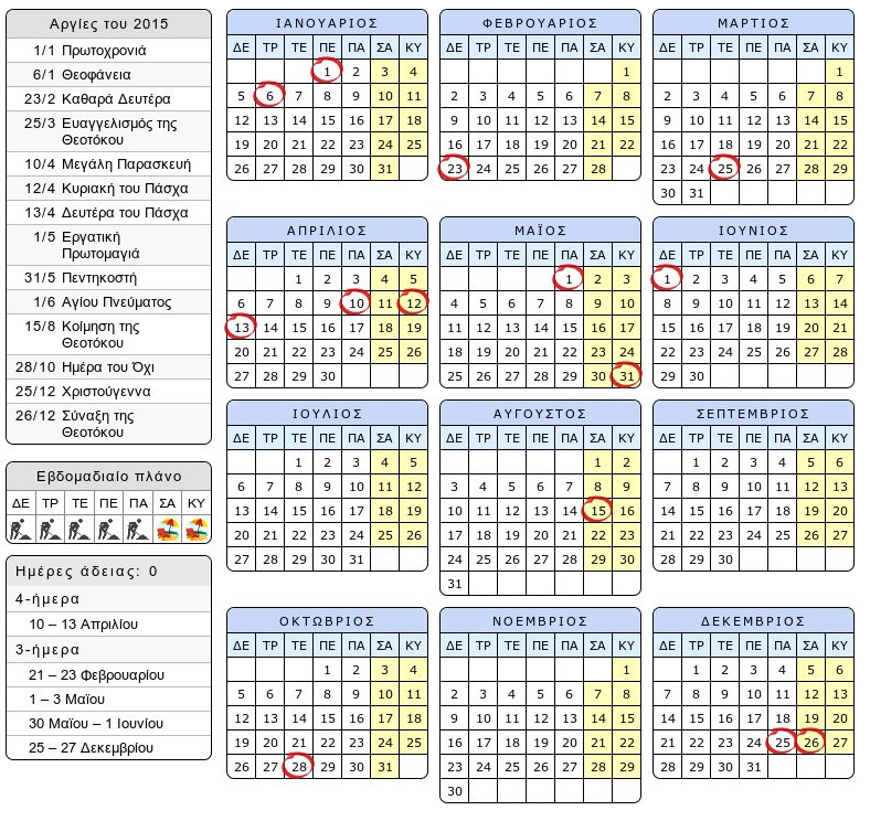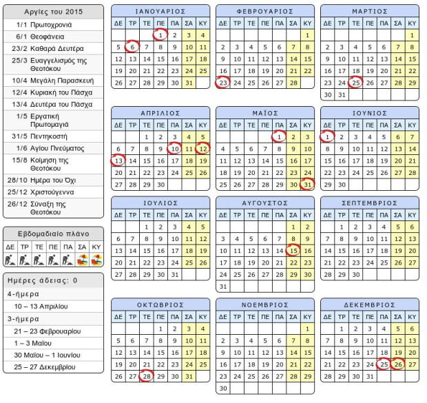 Οι αργίες του 2015 -Ποιες προσφέρουν 3ήμερα, ποιες πέφτουν Σάββατο [λίστα]