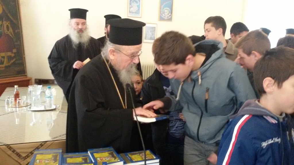 Ο Σεβασμιώτατος Μητροπολίτης κ. Κοσμάς, στο τέλος κάθε συναντήσεως, προσέφερε ως ευλογία σε κάθε παιδί, το βιβλίο του αειμνήστου συγγραφέα Φάνη Μιχαλόπουλου «ΚΟΣΜΑΣ ο ΑΙΤΩΛΟΣ, ο Εθναπόστολος» που μόλις κυκλοφόρησε σε επανέκδοση από την Ιερά Μητρόπολη Αιτωλίας και Ακαρνανίας.