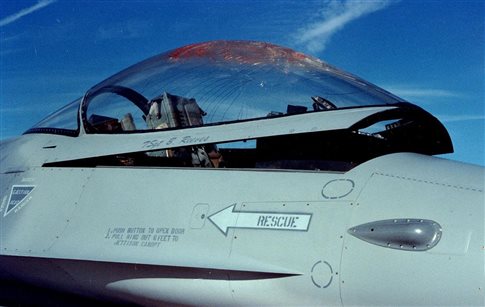 Κόκπιτ μαχητικού F-16 έπειτα από σύγκρουση με πτηνό. Τα πουλιά φαίνεται ότι δεν υπολογίζουν την ταχύτητα των αεροπλάνων (Πηγή: Κοινό Κτήμα)