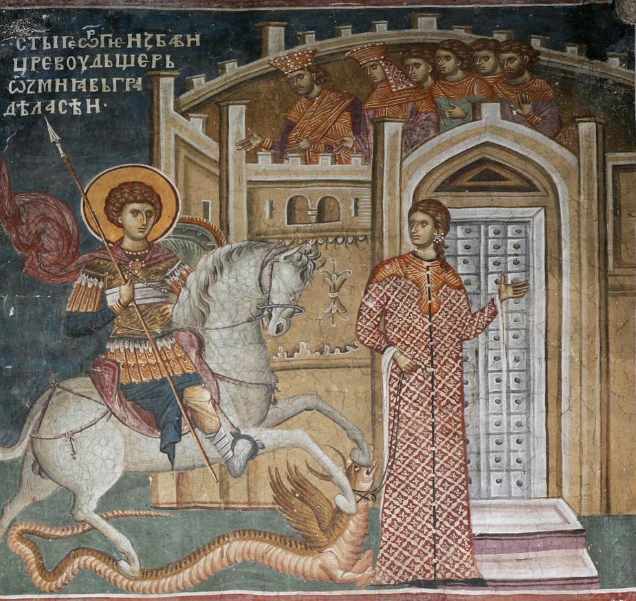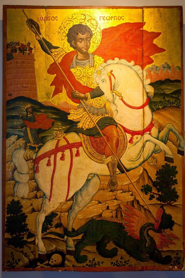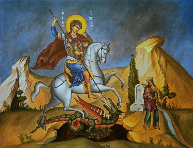 São Jorge, o Grande Mártir, era oficial do exército romano, à época do imperador Diocleciano. Recusando-se a obedecer à ordem imperial de oferecer sacrifícios aos deuses, e censurando abertamente a perseguição aos cristãos, foi submetido a várias torturas, as quais suportou heroicamente. São Jorge foi decapitado em Nicomédia (Ásia Menor) no ano 303. Como verdadeiro cristão e mártir, São Jorge foi um “soldado de Cristo”, vitorioso sobre o mal, simbolizado pelo “dragão” da lenda. No calendário oriental comemora-se São Jorge em 06 de maio.