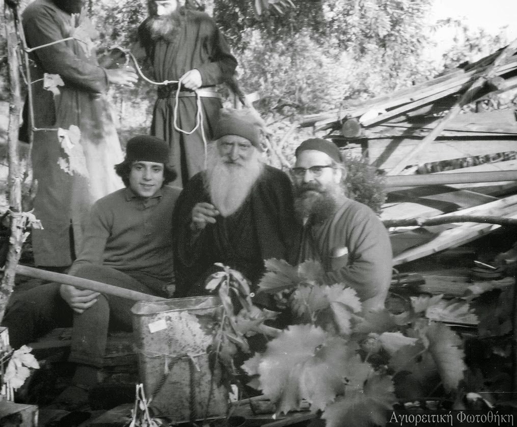 Μοναδική φωτογραφία των Αγίου Παϊσίου και παπα Τύχωνα με τους αδελφούς Ιωασαφαίους, που τους επισκέφθηκαν στο Κελλί του Τιμίου Σταυρού