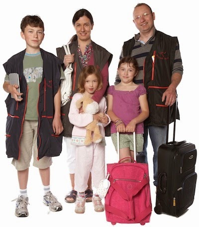 Rufus Roo, κατάλληλο για όλη την οικογένεια. Μοιάζει με σακάκι και οι 6 τσέπες του χωράνε έως και 22 κιλά πράγματα. Το φοράτε και απλά το βγάζετε στο αεροπλάνο. Οι τιμές ξεκινούν από 20€ το παιδικό και 40-45€ για ενήλικες ανάλογα το μέγεθος.