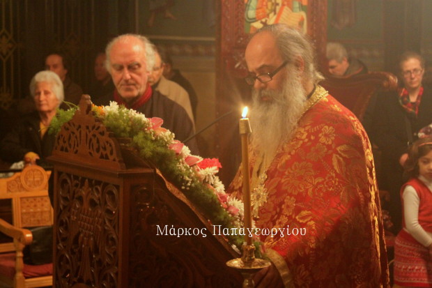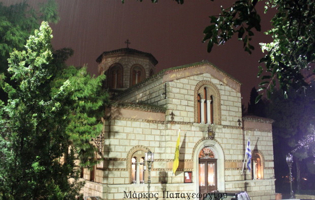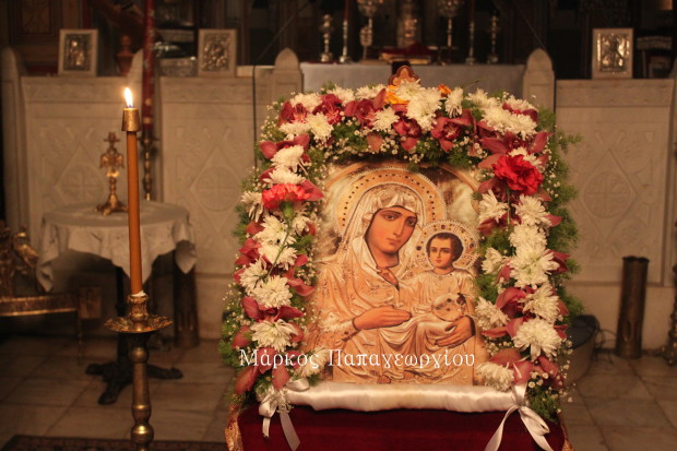 Πλήθος πιστών συνέρρευσε, παρά την δυνατή βροχή, στον Ιερό Ναό για να τιμήσει την Θεοτόκο, ψάλλοντας το «Χαίρε Νύμφη Ανύμφευτε».
