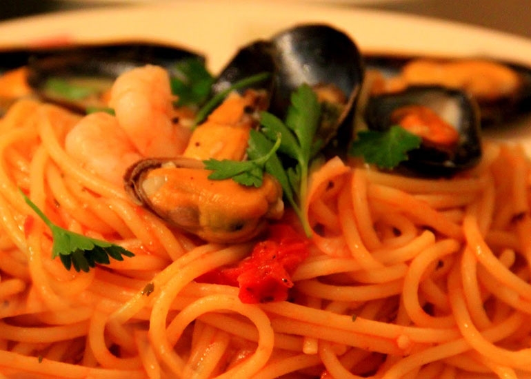 Μακαρονάδα με σάλτσα ντομάτας και μύδια