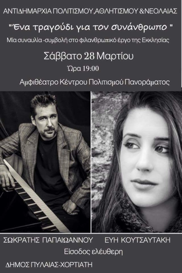Τραγουδάμε μαζί…για τον συνάνθρωπο!!!! 27 Μαρτίου 2015 Ο Ιερός Μητροπολιτικός Ναός Αγίου Γεωργίου Νεαπόλεως σε συνεργασία με τον Δήμο Χορτιάτη-Πυλαίας σας καλεί με πολύ χαρά σε μια κοινή τραγουδοπαρέα!!! Τραγουδάμε ΜΑΖΙ ΓΙΑ ΤΟΝ ΣΥΝΑΝΘΡΩΠΟ !!!! Tags:Τραγουδάμε μαζί...για τον συνάνθρωπο!!!!