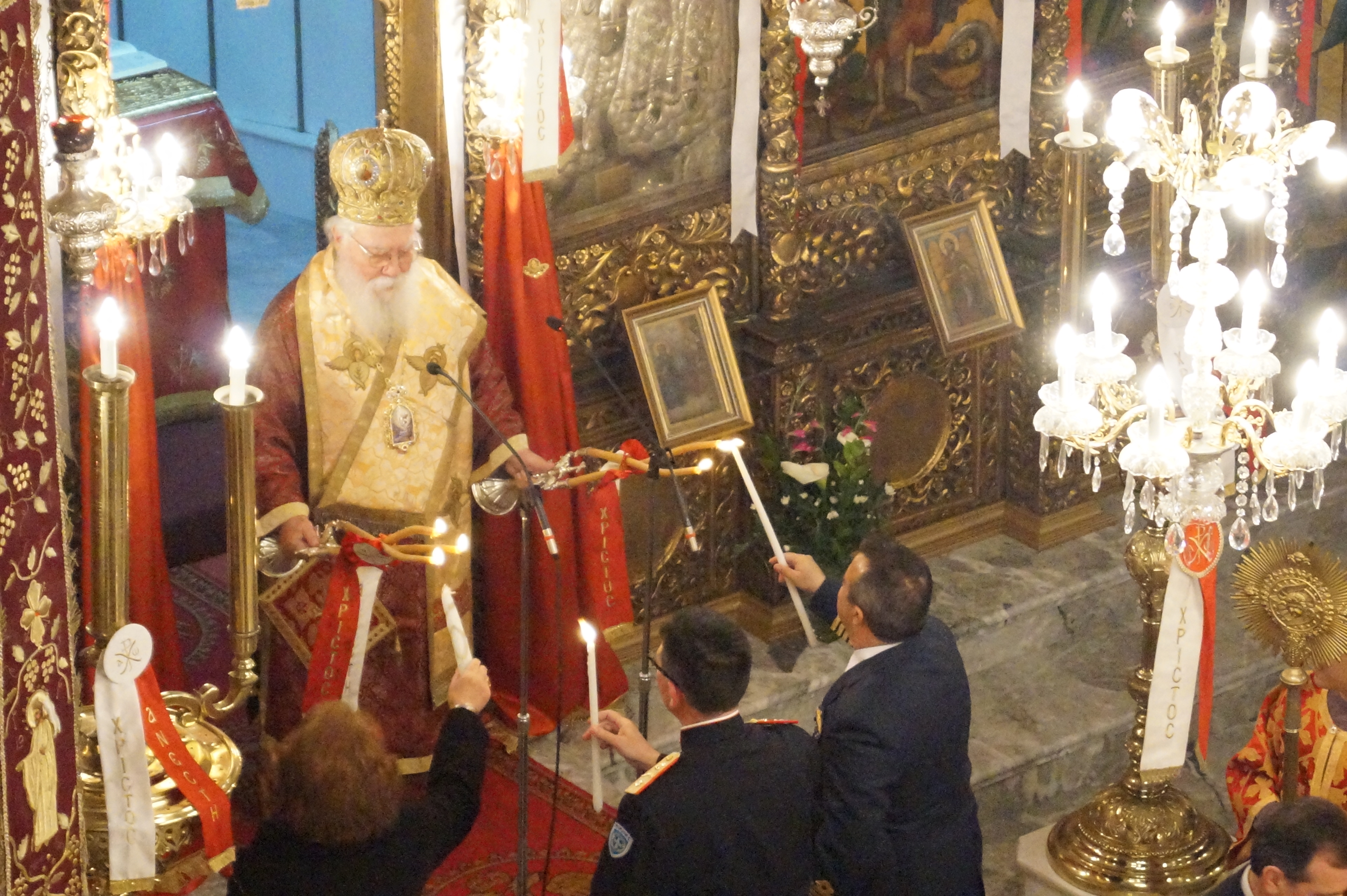 ΜΕ ΤΗΝ ΣΥΜΜΕΤΟΧΗ ΟΛΩΝ ΤΩΝ ΙΕΡΕΩΝ ΤΟΥ ΝΗΣΙΟΥ ΤΩΝ ΠΟΛΙΤΙΚΩΝ ΚΑΙ ΣΤΡΑΤΙΩΤΙΚΩΝ ΑΡΧΩΝ ΚΑΙ ΠΛΗΘΟΣ ΠΙΣΤΩΝ ΤΕΛΕΣΤΗΚΕ Ο ΕΣΠΕΡΙΝΟΣ ΤΗΣ ΑΓΑΠΗΣ. ΜΕ ΤΟ ΠΕΡΑΣ ΤΟΥ ΕΣΠΕΡΙΝΟΥ Ο ΜΗΤΡΟΠΟΛΙΤΗΣ ΜΟΙΡΑΣΕ ΣΕ ΟΛΟΥΣ ΩΣ ΕΥΛΟΓΙΑ ΤΑ ΠΑΣΧΑΛΙΑ ΑΥΓΑ.