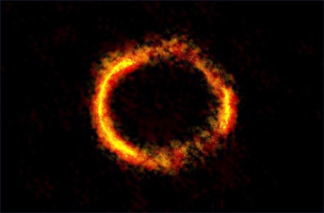 Πρόκειται για μια σπάνια περίπτωση βαρυτικού φακού που εμφανίζεται ως σχεδόν πλήρης δακτύλιος, επισημαίνουν οι ερευνητές του ALMA. Αυτό συμβαίνει επειδή η Γη και οι δύο γαλαξίες είναι σχεδόν τέλεια ευθυγραμμισμένοι. Η εικόνα έχει απίστευτα μεγάλη ανάλυση, καθώς καλύπτει μια περιοχή μόλις 0,0000063888888889 μοιρών στον ουρανό. Αυτό θα ισοδυναμούσε με το να βλέπει κανείς από τη Νέα Υόρκη το δαχτυλίδι μιας μπασκέτας στην κορυφή του Πύργου του Άιφελ.