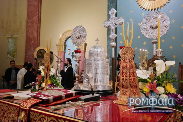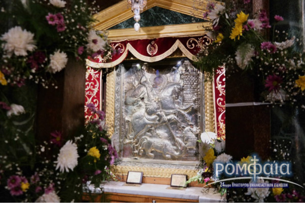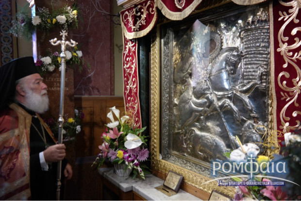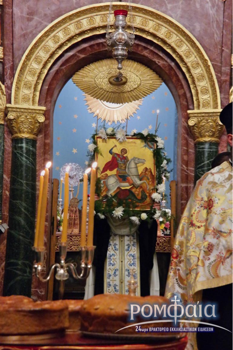 Να αναφερθεί ότι στον Εσπερινό έψαλλε χορός των Βατοπαιδινών Πατερών, ενώ ο Ναός του Αγίου Γεωργίου ήταν ασφυκτά γεμάτος από πιστούς.
