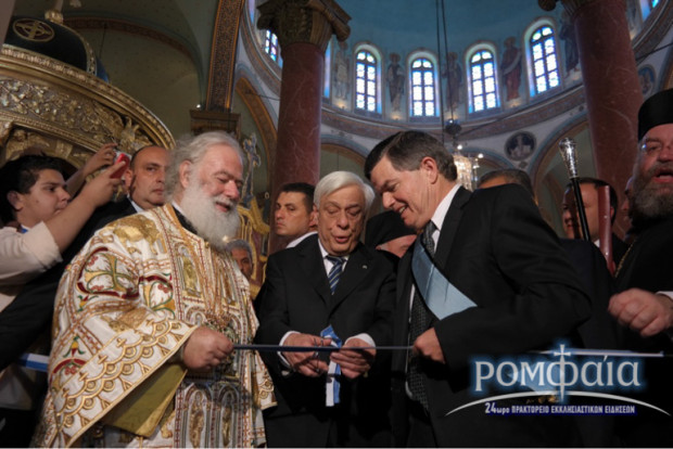 Ο Πρόεδρος της Ελληνικής Δημοκρατίας από την πλευρά του τόνισε: «Σήμερα είναι μια ιερή στιγμή και ευχαριστώ τον Θεό που με αξίωσε να είμαι παρόν εδώ»