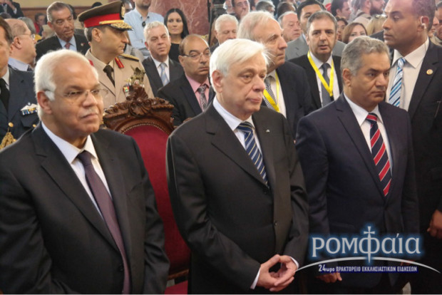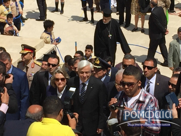 Η Θεία Λειτουργία τελέστηκε παρουσία του Προέδρου της Ελληνικής Δημοκρατίας κ. Προκόπη Παυλόπουλου, ο οποίος έφτασε στο Ναό συνοδευόμενος από τον Κυβερνήτη του Καΐρου και τον Υπουργό Αρχαιοτήτων της Αιγύπτου.