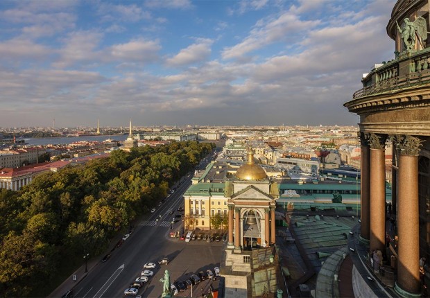 Παρατηρώντας την πόλη από ψηλά: Το κέντρο της Αγίας Πετρούπολης δεν έχει κανένα ψηλό κτίριο (εκτός από τους καθεδρικούς ναούς), διότι από το 1844 έως το 1905 ο νόμος επέβαλε να μην κτιστεί κανένα κτίριο υψηλότερο από την κατοικία του τσάρου, δηλαδή τα Χειμερινά Ανάκτορα. Έτσι, αν ανέβετε στο περιστύλιο του καθεδρικού ναού του Αγίου Ισαάκ, θα έχετε μια καταπληκτική θέα της πόλης από εκείνο το σημείο.