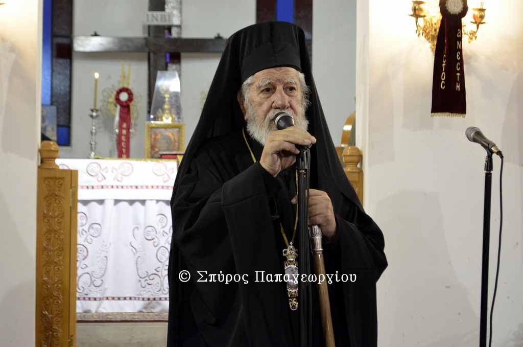 Ο Σεβασμιώτατος, προσφώνησε τον Θεοφιλέστατο κ. Κλήμη και τον ευχαρίστησε για τη βοήθειά του και τη συνεργασία του, στην ολοκλήρωση των εργασιών, για την ανέγερση του Ι.Ν. Αγίας Τριάδος και τον κάλεσε να πει δύο λόγια προς το Ιερό Εκκλησίασμα.