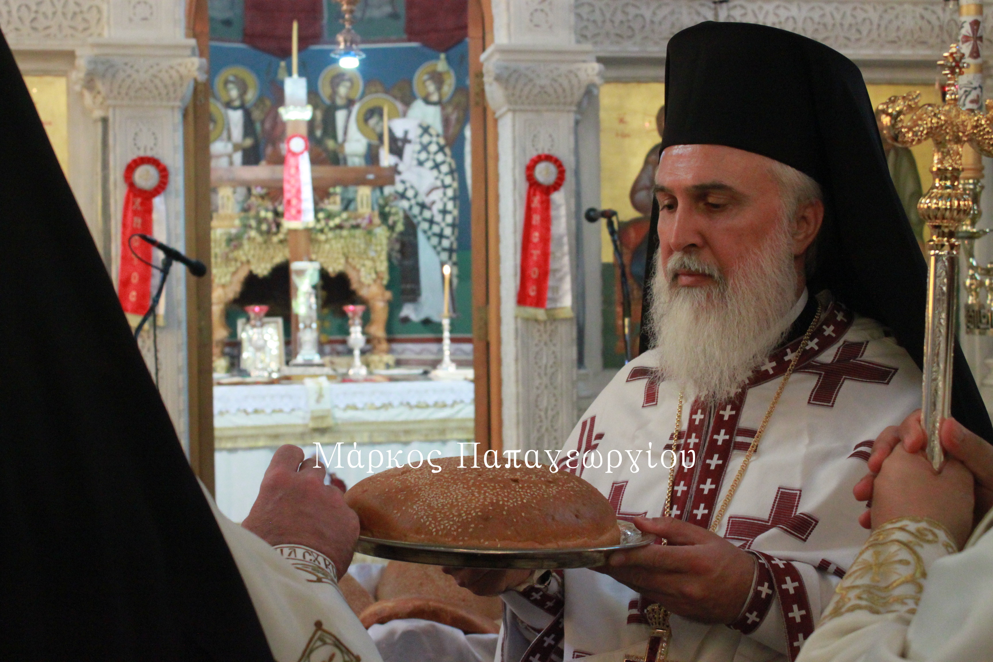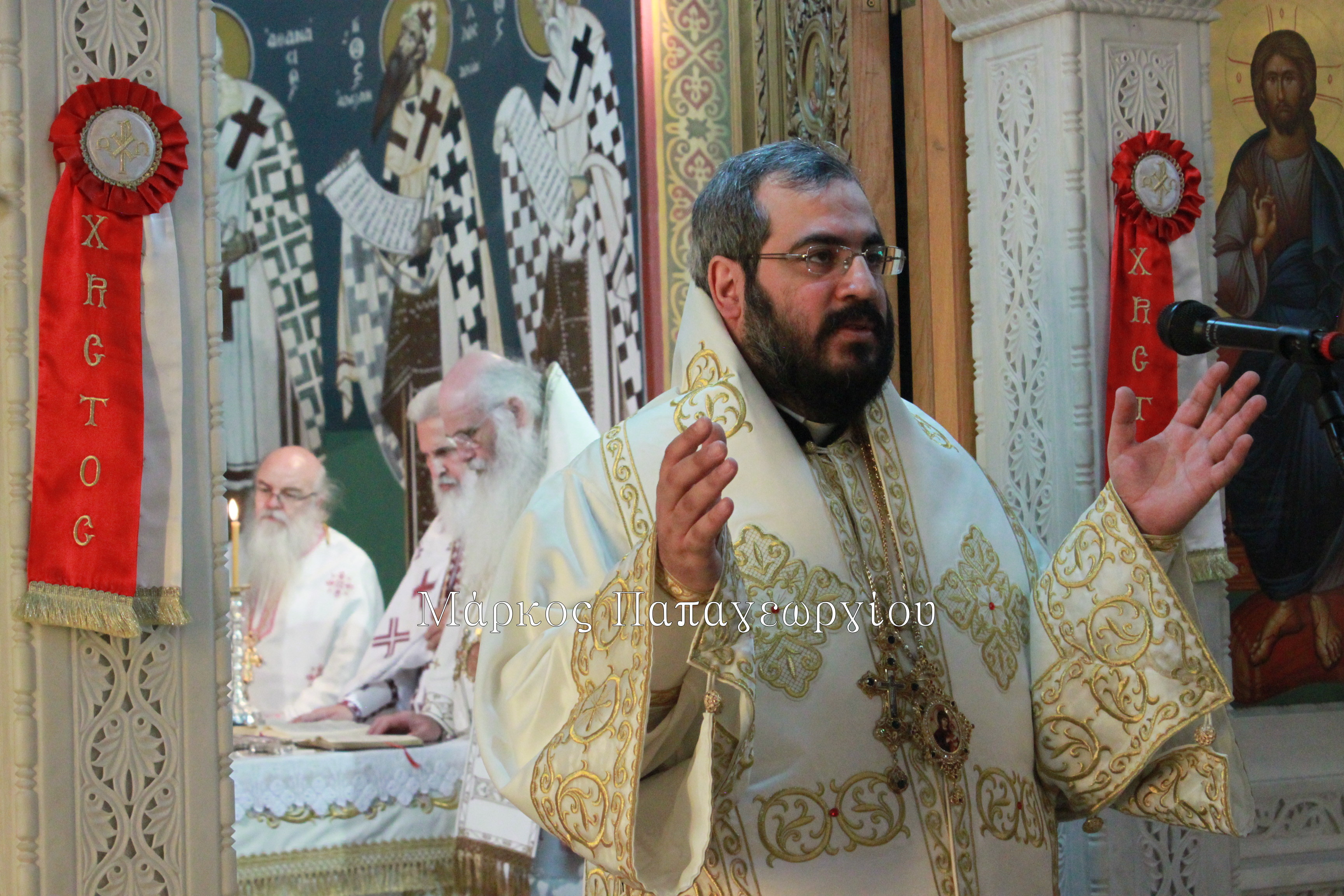 Κλείνοντας, ευχαρίστησε τον Θεοφιλέστατο εκ Συρίας για την παρουσία του στον Ναό, όπου πρωτοδιακόνησε πριν έντεκα χρόνια, ως διάκονος και στη συνέχεια ως ιερέας και τώρα διακονεί ως Επίσκοπος του Πατριαρχείου Αντιοχείας στη διασπορά της Βραζιλίας. Με τη σειρά του ο Θεοφιλέστατος Εδέσσης, αναφέρθηκε «στα εφόδια», που πήρε μαζί του «φεύγοντας από εδώ, για την ιερατική ιεραποστολή στην εξορία που βρίσκεται», όπως χαρακτηριστικά ανέφερε. Τα λόγια του Σεβασμιώτατου ήταν, «να μη νιώθει ξένος, γιατί στην Εκκλησία μας ενώνει η πίστη και η αγάπη του Χριστού.» Επιπλέον τόνισε ότι, «καλός ιερέας δεν είναι εκείνος που κηρύττει όμορφα ή έχει πτυχία, αλλά εκείνος που καταφέρνει να κατεβάσει τον Θεό στη γη. Να μεταδώσει την αγάπη στους ανθρώπους που διψάνε για πίστη και λατρεία στο πρόσωπο του Χριστού. Το πρόσωπο του Χριστού είναι η πηγή της χαράς και της αιωνίου ζωής»