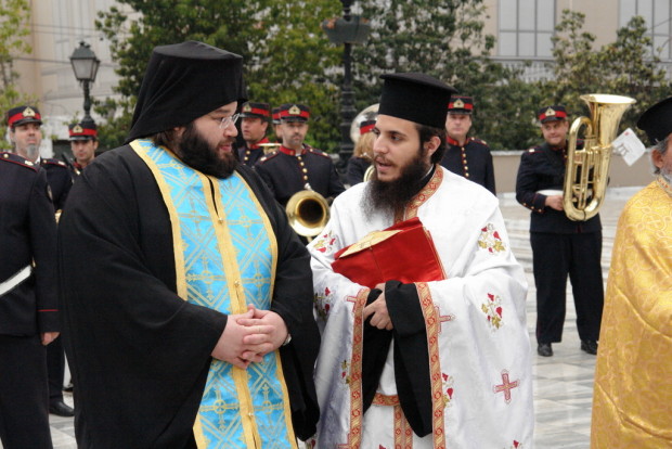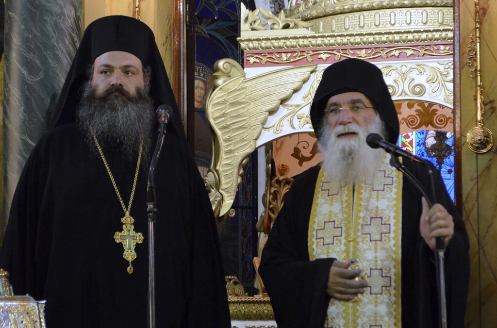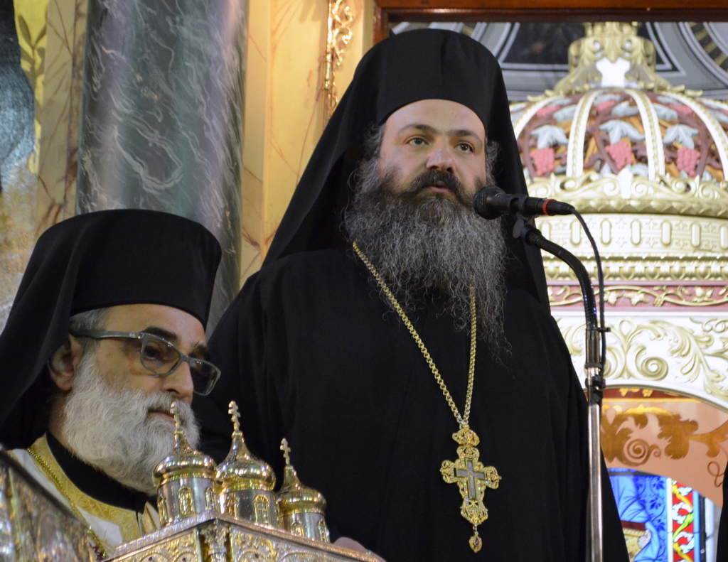 Ο Πρωτοσύγγελος π. Νήφωνας Καπογιάννης καλωσόρισε τον Καθηγούμενο Γέροντα Νεκτάριο και τον ευχαρίστησε καθώς και τον Σεβ. Μητροπολίτη Φωκίδος κ. Θεόκτιστο για την ευλογία να έρθουν τα λείψανα στον Ιερό Ναό εν’ όψει των λατρευτικών εκδηλώσεων «Κωνσταντίνεια 2015». Ο π. Νεκτάριος ευχαρίστησε με την σειρά του εκ μέρους του Σεβ. Μητροπολίτου Φωκίδος ενώ είπε πως «ήλθαμε ξανά στην αγαπημένη μας Μητρόπολη Πειραιώς». Συμπλήρωσε λέγοντας ότι «οι Άγιοι ήταν άνθρωποι σαν κι εμάς, που όμως υπέταξαν το δικό τους θέλημα έναντι σε αυτό του Θεού. Ακολούθησαν τον δρόμο του Θεού, λούστηκαν το άκτιστο Φως του Θεού και έφτασαν στην αγιότητα. Το δικό μας θέλημα είναι αυτό που φράζει το δρόμο προς τον Θεό και την αγιότητα.»