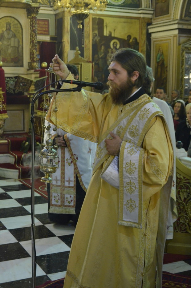 Στην συνέχεια ακολούθησε Πανηγυρικός Εσπερινός προεξάρχοντος του Γέροντος Νεκταρίου και με τη συμμετοχή ιερέων του Ναού.