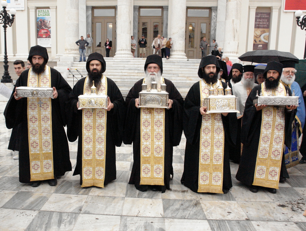 Τα Ιερά Σεβάσματα κομιζόμενα από τον Καθηγούμενο της Ιεράς Μονής Αγίου Αυγουστίνου Ιππώνος & Αγίου Σεραφείμ του Σαρώφ Τρικόρφου Φωκίδος, Αρχιμανδρίτη Γέροντα Νεκτάριο Μουλατσιώτη, έγιναν δεκτά από τον εκπρόσωπο του Σεβ. Μητροπολίτου Πειραιώς κ .Σεραφείμ, Αρχιμ. π. Νήφωνα Καπογιάννη, Πρωτοσύγκελλο της Ιεράς Μητροπόλεως Πειραιώς.