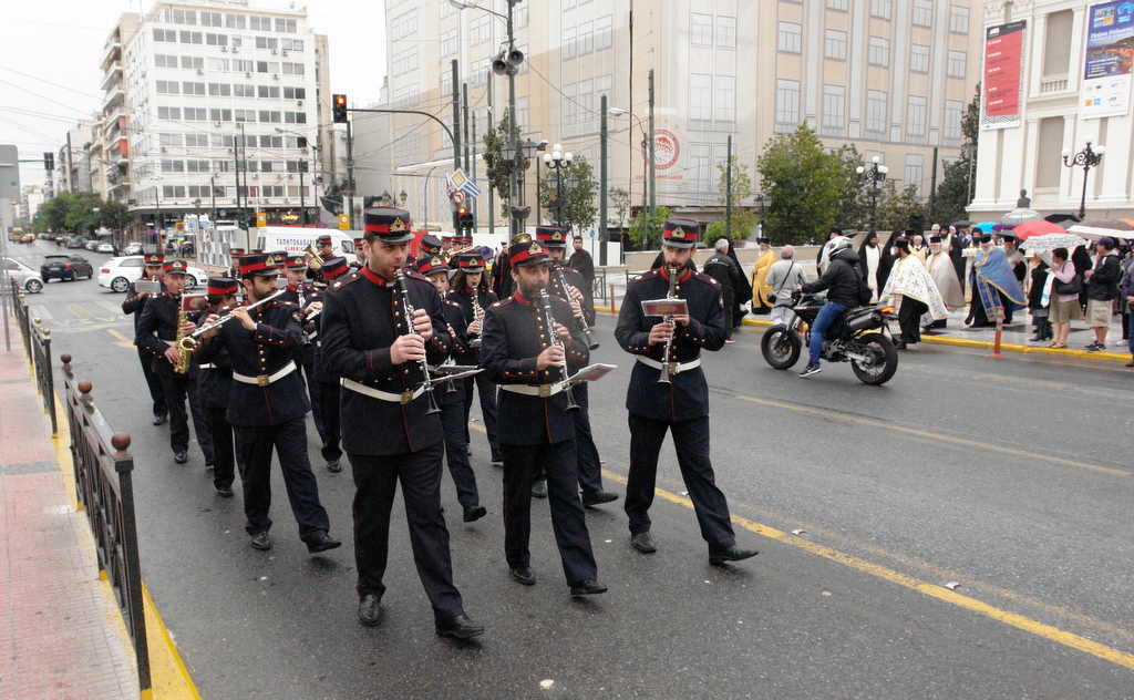Η υποδοχή έγινε κάτω από δύσκολες συνθήκες λόγω της βροχής, μπροστά από το Δημοτικό Θέατρο Πειραιά . Εν συνεχεία η πομπή πορεύθηκε προς τον Ιερό Ναό υπό τους ήχους της Φιλαρμονικής του Δήμου Πειραιώς ενώ συνόδευσαν και μαθητές και τμήμα Ελληνικού Ερυθρού Σταυρού.