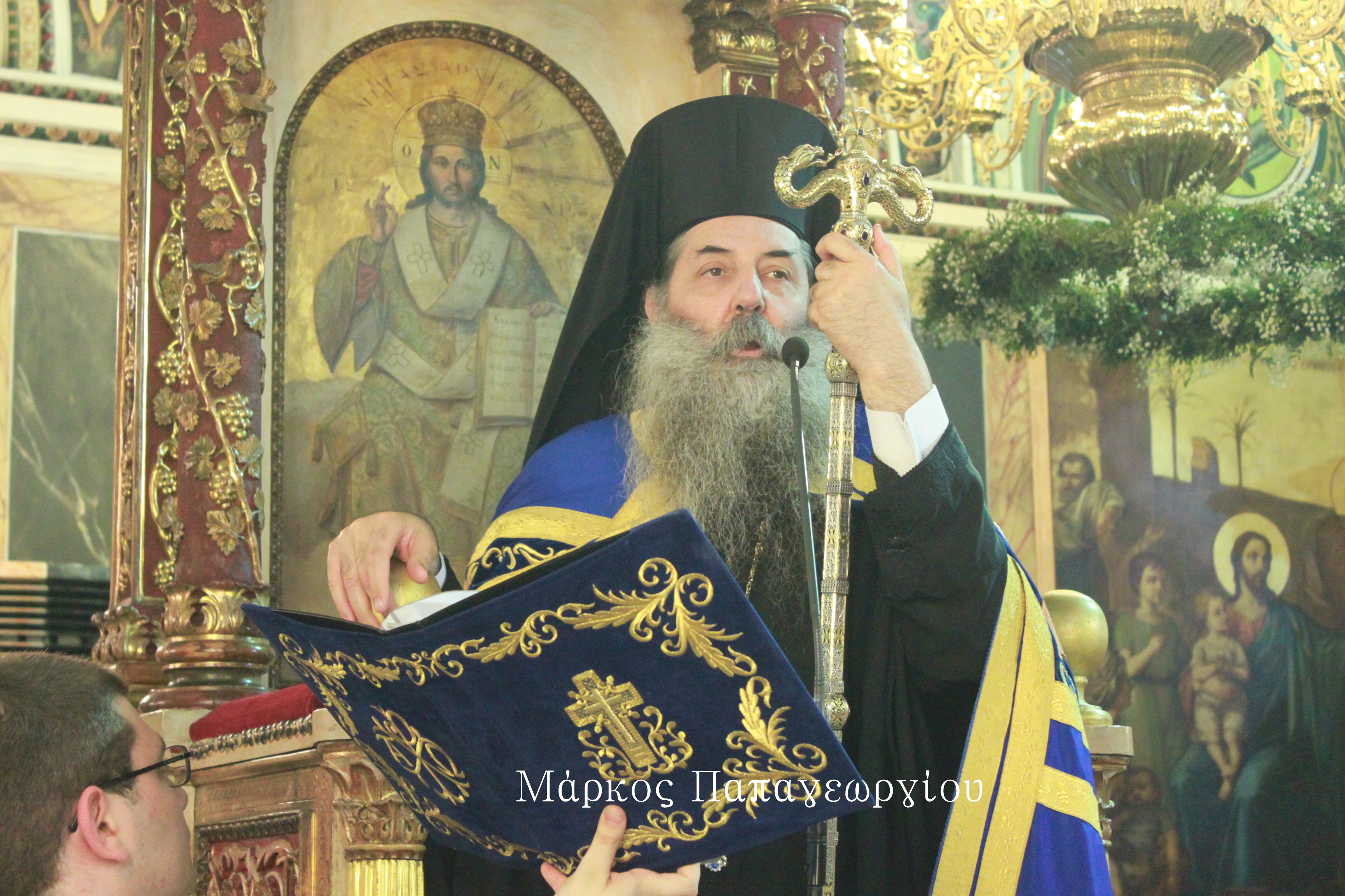 Λίγο πριν την απόλυση, ο Σεβασμιώτατος χειροθέτησε τον Πρωτοψάλτη του Ναού Χρυσοβαλάντη Σεραφείδη με το Οφφίκιο του Άρχοντα Πρωτοψάλτη.