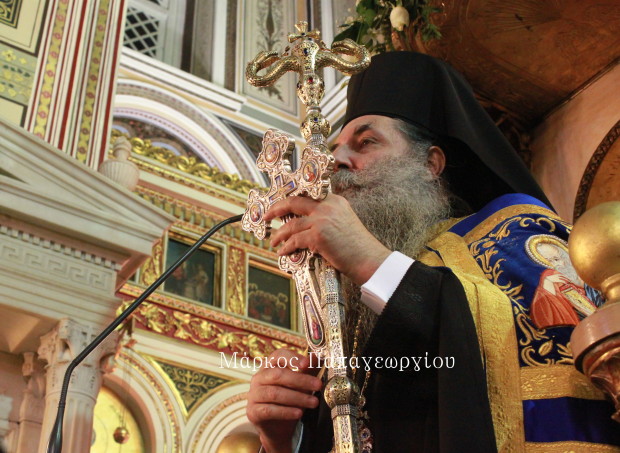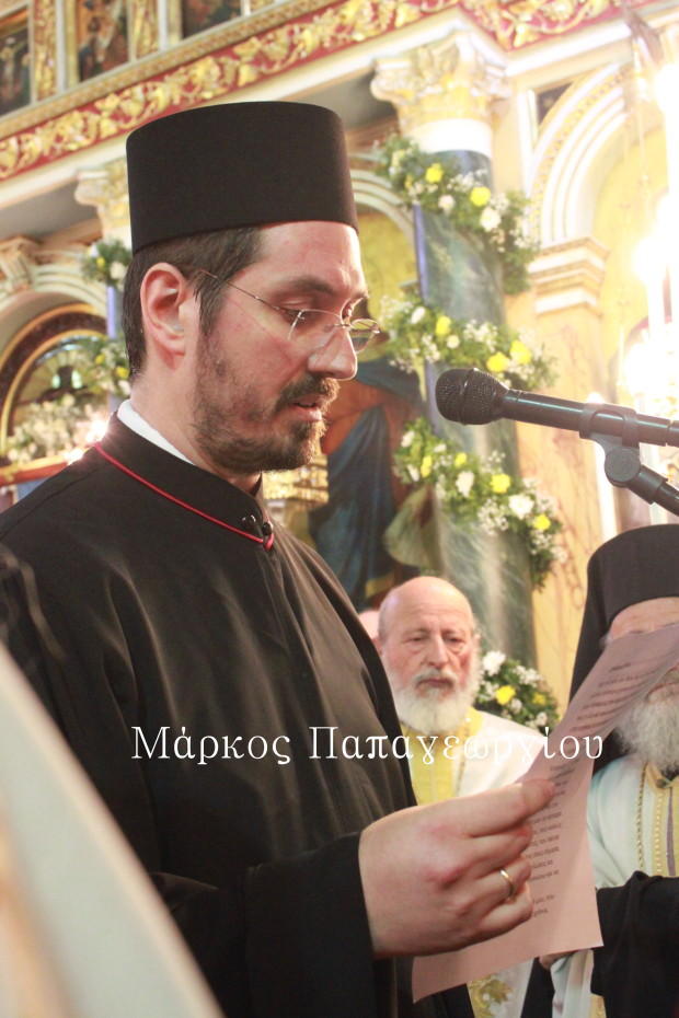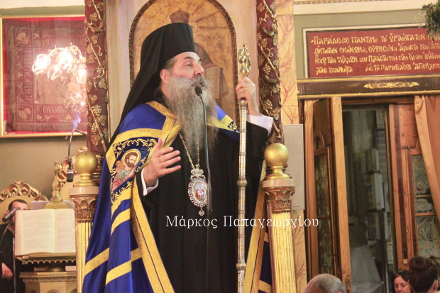 Έκλεισε τον Λόγο του, απευθυνόμενος στο Εκκλησίασμα: «Χαρείτε αυτό το μεγάλο δώρο και αυτή την αύθαρτη υιοθεσία του Θεού και σαν ελάχιστη ευγνωμοσύνη ας μεταποιήσουμε σε καθημερινό βίωμα την ευλογία της Αναλήψεως».