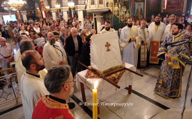 Με την επιστροφή της πομπής στον Ιερό Ναό ο κ. Χρυσόστομος ευχαρίστησε για ακόμη μια φορά για την πρόσκληση να συμμετάσχει στις πανηγυρικές εκδηλώσεις της ενορίας αλλά και την αγάπη του κόσμου, ενώ έκλεισε λέγοντας ‘ότι «η Εκκλησία είναι η Κιβωτός που μόνο μέσα σε αυτήν βρίσκουμε την σωτηρία μας, αυτή μόνο μας έχει μείνει και σε αυτήν εμπιστευόμαστε να φωτίζει τους ηγέτες του τόπου και να λειτουργούν για το καλό του τόπου.»