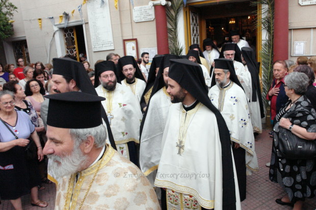 Απόψε τελέστηκε ο Μεθέορτος Εσπερινός και εν συνεχεία η Λιτάνευση, της Ιεράς εικόνος των Αγίων στους δρόμους πέριξ της ενορίας, υπό τους ήχους της Φιλαρμονικής της Αστυνιμίας και του Δήμου Αθηναίων και με τη συμμετοχή πλήθους πιστών.