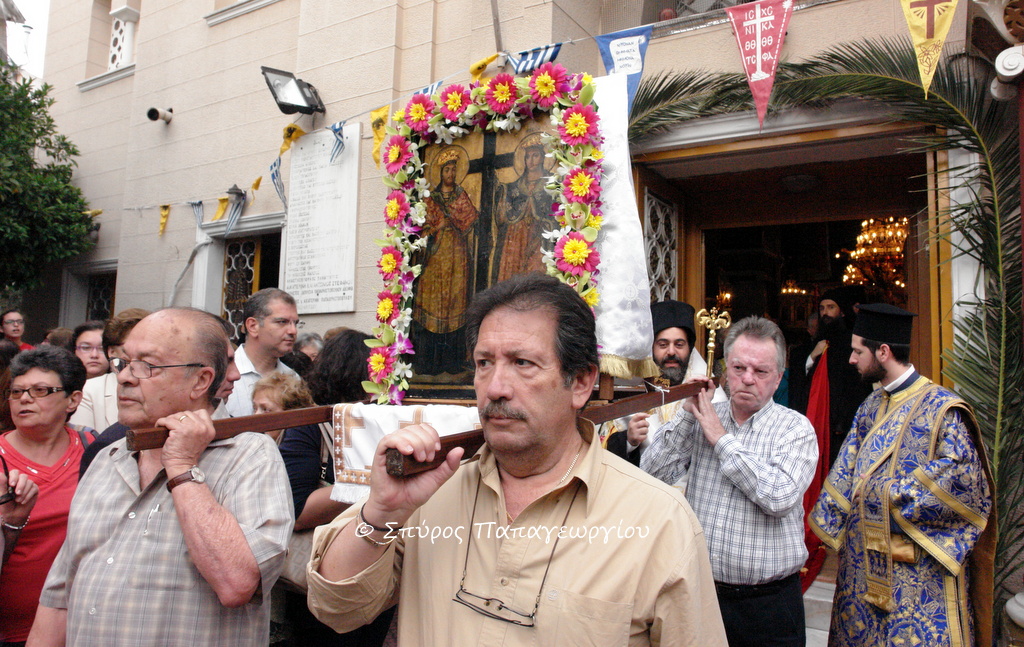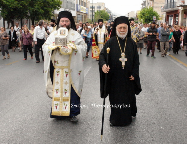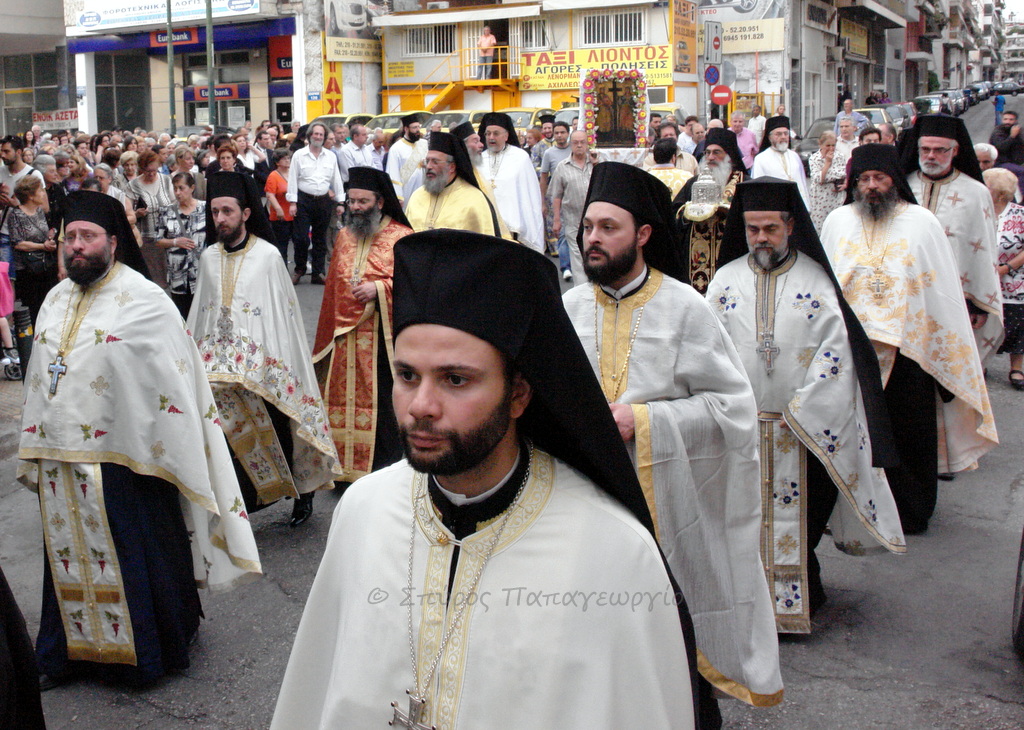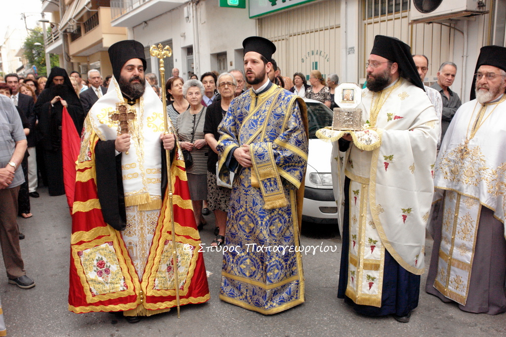 Στη Λιτάνευση χοροστάτησε ο Πανιερώτατος Μητροπολίτης Κυρηνείας Χρυσόστομος, περικυκλούμενος από πλήθος ιερέων της Ιεράς Αρχιεπισκοπής Αθηνών αλλά και άλλων Μητροπόλεων του λεκανοπεδίου. Κατά τη λιτάνευση, πολλοί ήταν οι πιστοί που έρραιναν με λουλούδια από τα μπαλκόνια τους την εικόνα.