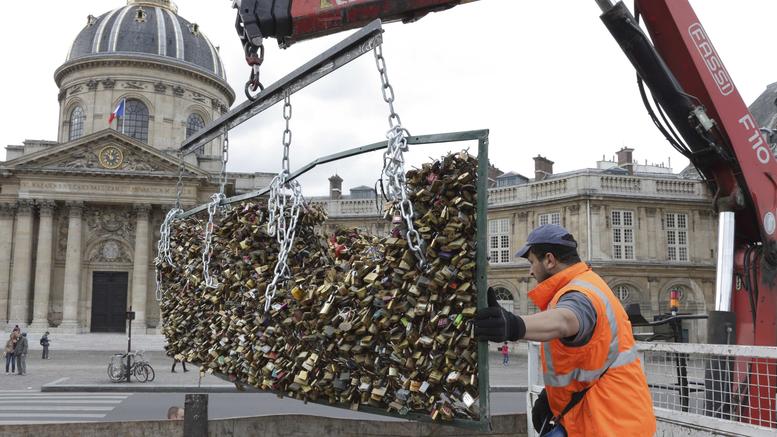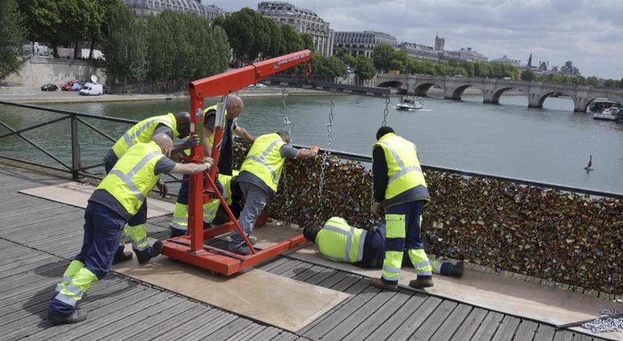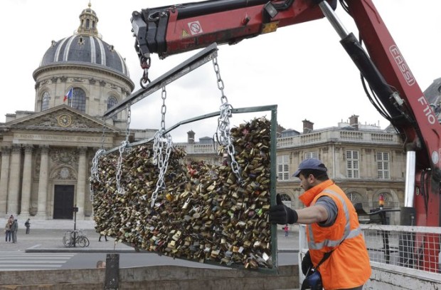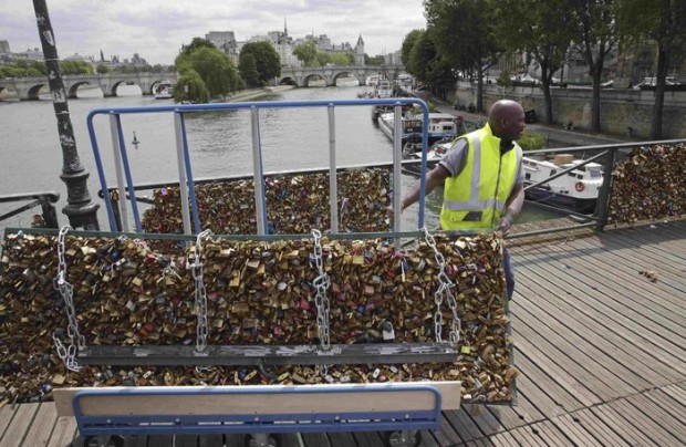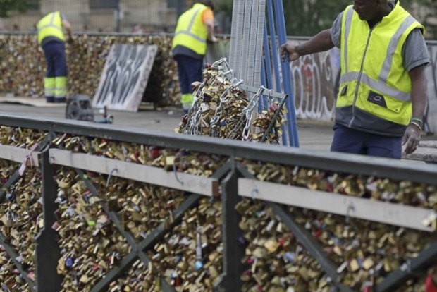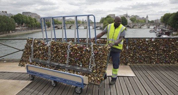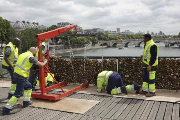 Από τη Δευτέρα, οι αρχές άρχισαν να αφαιρούν τους 45 τόνους λουκέτων που έδεναν στη γέφυρα Pont des Arts στο Σηκουάνα ερωτευμένα ζευγάρια, συμβολίζοντας τον αιώνα δεσμό αγάπης τους.