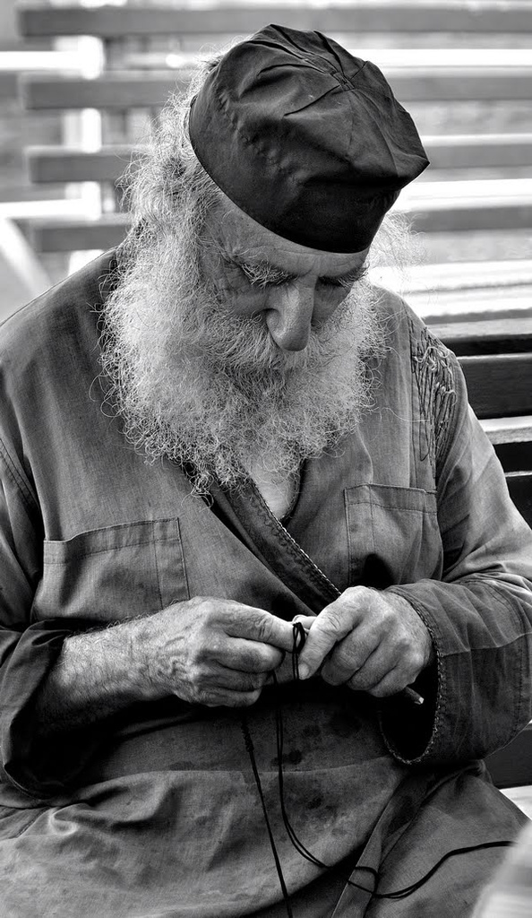 *Ο γερω-Χαράλαμπος ζούσε απλά, ασκητικά με την ευχή και την ψαλμωδία στο στόμα. Τα χέρια του δεν σταματούσαν να πλέκουν κομποσχοίνι. Είχε μάθει να πλέκει και τη νύχτα χωρίς φως.