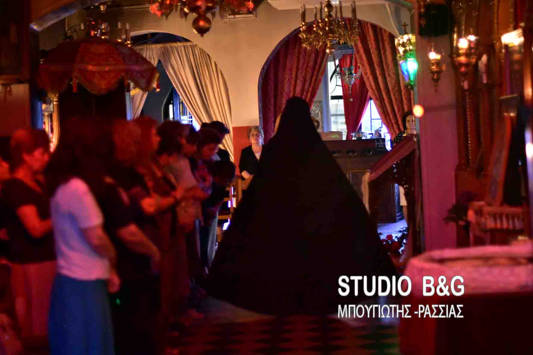 Εκατοντάδες πιστοί έσπευσαν να προσευχηθούν στην Αγρυπνία και το Μνημόσυνο που τελέστηκε στην Ιερά μονή Παναγίας Πορτοκαλούσης ή κατακεκρυμένης Άργους, στη μνήμη του Αγίου Παϊσίου. Αυτήν τέλεσαν οι Ιερομόναχοι της μονής οι αυτάδελφοι πατέρας Ιωσήφ και Μακάριος Δρόσος. Ο πατέρας Παίσιος ο οποίος στις καρδιές και στις ψυχές όλων των πιστών θεωρούνταν ήδη «Άγιος» είναι πολύ αγαπητός και στην περιοχή της Αργολίδος.