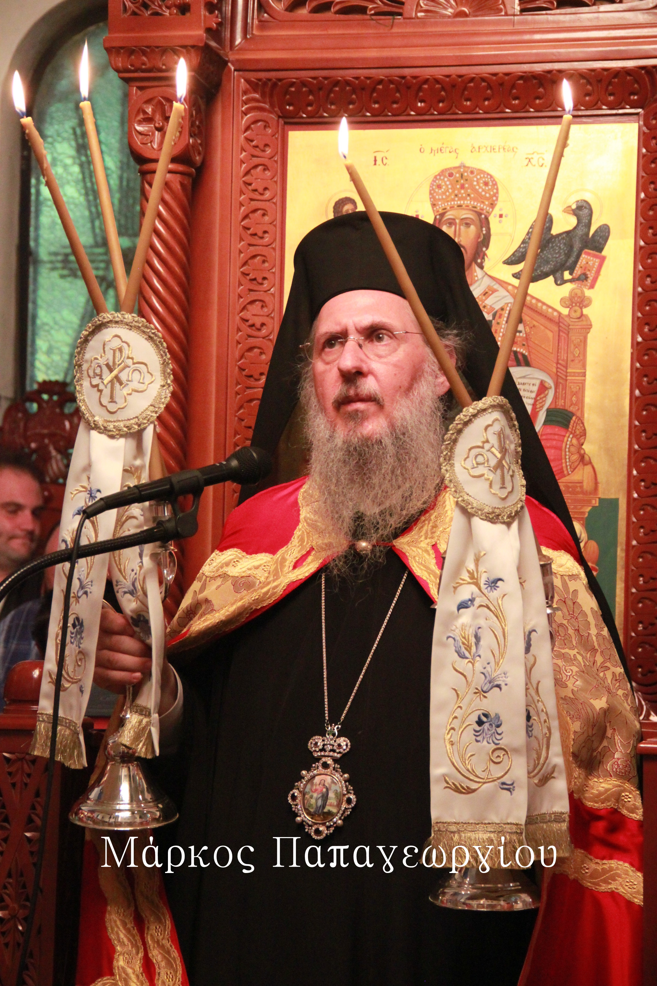 Ο προϊστάμενος του Ναού, Αρχιμ. π. Ισίδωρος Στεφανάτος, ευχαρίστησε τον Θεοφιλέστατο για την αποψινή χοροστασία του καθώς επίσης και τους πολυάριθμους προσκυνητές που ανταποκρίνονται και ενισχύουν την αποπεράτωση του Προσκυνήματος. Ο μικρός αυτός προσκυνηματικός Ναός καλλωπίζεται και αγιογραφείται τμηματικά, χάρη στην στήριξη των πιστών που συνεισφέρουν από το υστέρημά τους.