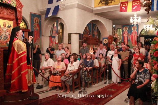 του Μάρκου ΠαπαγεωργίουΠανηγυρικός Αρχιερατικός Εσπερινός τελέστηκε απόψε, Σάββατο 25 Ιουλίου 2015, στον Ι.Ν. Αγίας Παρασκευής στο Περιστέρι, για τον εορτασμό της Οσιοπαρθενομάρτυρος Αγίας Παρασκευής της Αθληφόρου. Στον Πανηγυρικό Εσπερινό χοροστάτησε ο Θεοφιλέστατος Επίσκοπος Θαυμακού κ. Ιάκωβος Καθηγούμενος της Ιεράς Μονής Ασωμάτων Πετράκη.Τον Θείο Λόγο κήρυξε ο Θεοφιλέστατος, ο οποίος χρησιμοποιώντας το παράδειγμα της Παρθενομάρτυρος Παρασκευής, ανέφερε πως το βασικότερο στοιχείο που την έκανε να υπομένει τα βασανιστήρια ήταν η πίστη της προς τον Θεό. «Η ζωή μας είναι τέτοια, ώστε σύμφωνα με τους Αγίους Αποστόλους, οφείλει να ακολουθεί το παράδειγμα των μαρτύρων της πίστης, να είναι δηλαδή θυσιαστική, συνδυασμένη γεμάτη με πόνο, θλίψη και βάσανα. Να ζήσει αυτό το μεγαλείο της πίστεως, της επικοινωνίας με τον Θεό. Η ζωή των Αγίων θα πρέπει να αποτελεί παράδειγμα για εμάς, ώστε να μας φέρνει πιο κοντά στην χάρη και την ευλογία Του. «