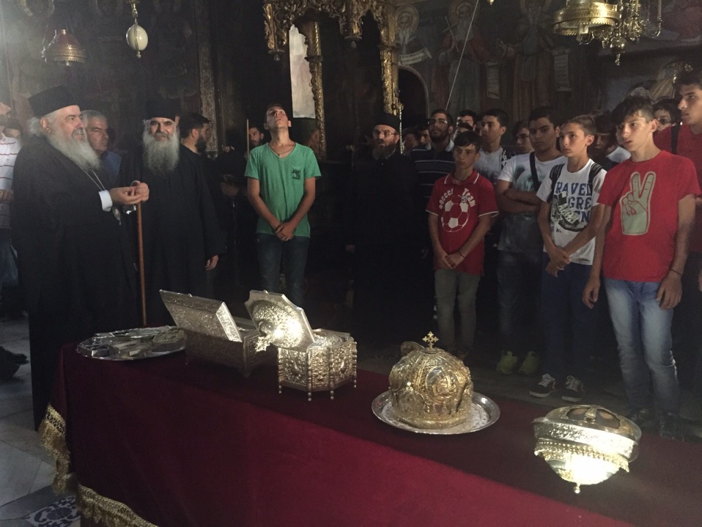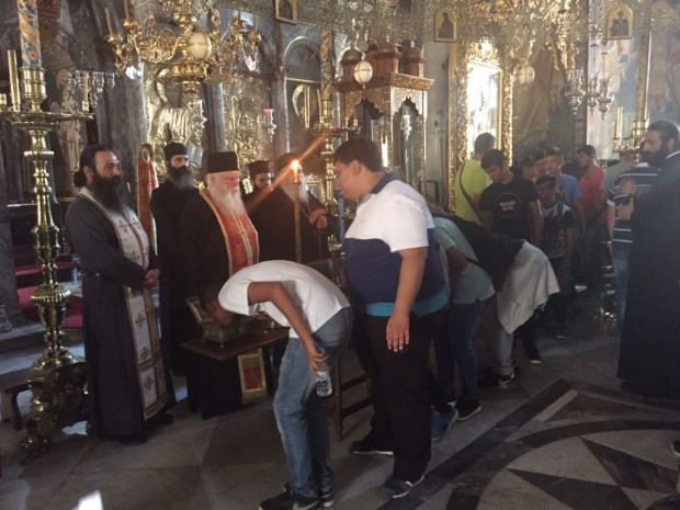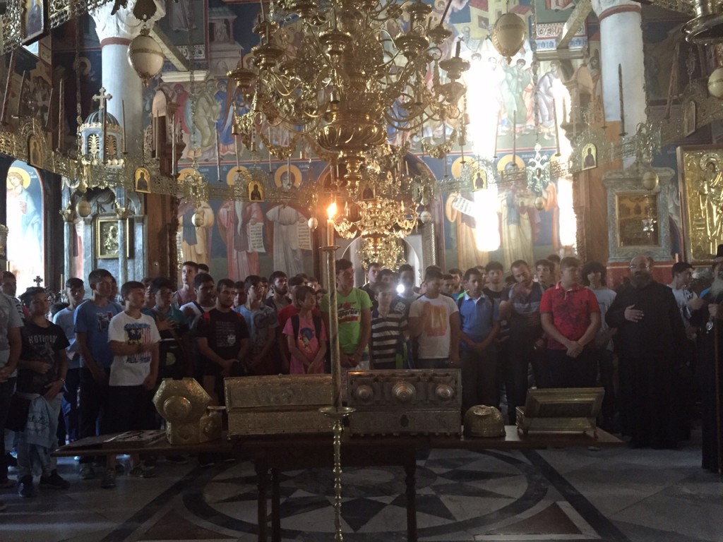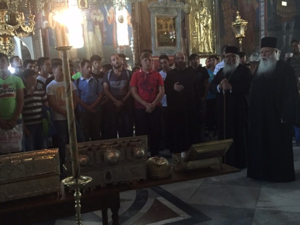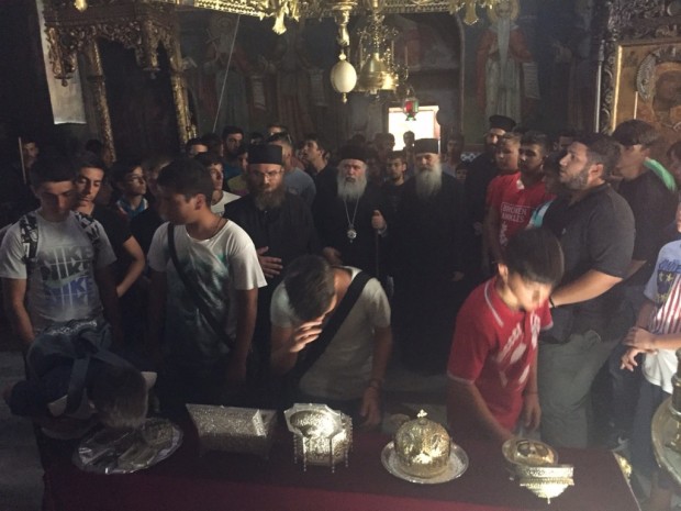 IMG_5311-1024x768Την Τρίτη 4 Αυγούστου 2015, οι 130 μαθητές Γυμνασίου και Λυκείου που συμμετέχουν στην κατασκήνωση «ο Καλός Ποιμήν» της Ιεράς Μητροπόλεως στο Ποσείδι Χαλκιδικής είχαν την εξαιρετική ευλογία να επισκεφθούν το Άγιο Όρος . Συνοδοιπόρος και Οδηγός σε τούτη την εξόρμηση- προσκύνημα ο Σεβασμιώτατος Μητροπολίτης Νεαπόλεως και Σταυρουπόλεως κ. Βαρνάβας.