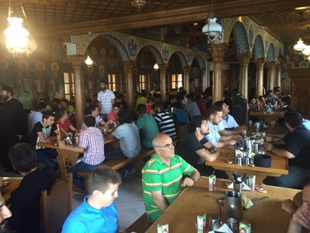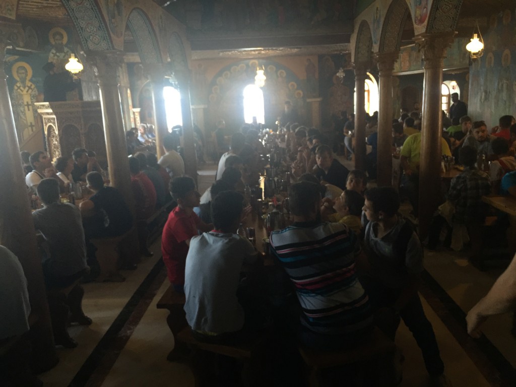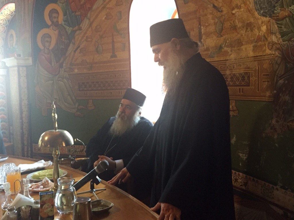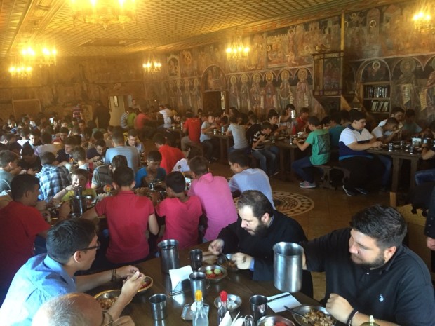 Οι κατασκηνωτές έγιναν δεκτοί με χαρά από τον Καθηγούμενο της Ιεράς Μονής Ξενοφώντος, π. Αλέξιο , ο οποίος παρέθεσε τράπεζα προς τιμήν τους ,καθώς και από τον Καθηγούμενο της Ιεράς Μονής Γρηγορίου, π. Χριστοφόρο.