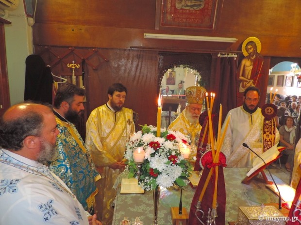 Ωσαύτως, εξέφρασε την ευγνωμοσύνη του προς τον αείμνηστο Προκάτοχό του, ο οποίος χειροτόνησε νέους και δραστήριους Κληρικούς, που σήμερα διακονούν ευόρκως τα ιερά Θυσιαστήρια της Μητροπόλεως, όπως οι παριστάμενοι Πρωτοπρ. Πέτρος Μαραγκός και Βασίλειος Τζανιδάκης, τους οποίους ευχαρίστησε και συνεχάρη για το ποιμαντικό τους έργο στη Μύκονο.