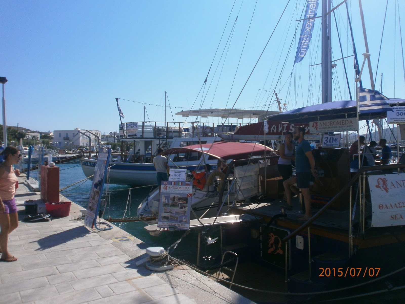 Φέτος, ταξιδέψαμε για τη Μήλο στις αρχές Ιουλίου, 4-9 Ιουλίου. Το Αιγαίο πέλαγος ήταν λιγάκι ανταριασμένο. Το καταμαράν κλυδωνιζόταν στα κύματα.