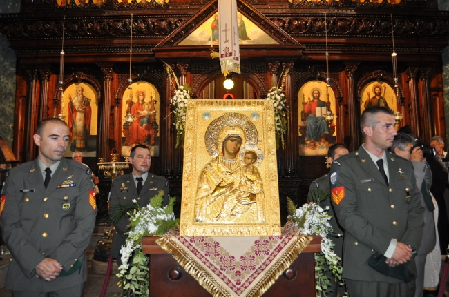 Τη Δευτέρα 7 Σεπτεμβρίου 2015, κλήρος και λαός της Λέσβου, υποδεχθήκαν στα προπύλαια του Ιερού Ναού του Αγίου Θεράποντος Μυτιλήνης, πιστό αντίγραφο της Ιερής Εικόνας της Παναγίας της Βηματάρισσας, από την Ιερά Μεγίστη Μονή Βατοπαιδίου του Αγίου Όρους.
