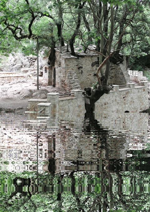 Δεκαεπτά πελώρια δένδρα ξεπηδούν από τη στέγη της, ενώ από τα θεμέλιά της αναβλύζουν τα νερά ενός κεφαλαριού.