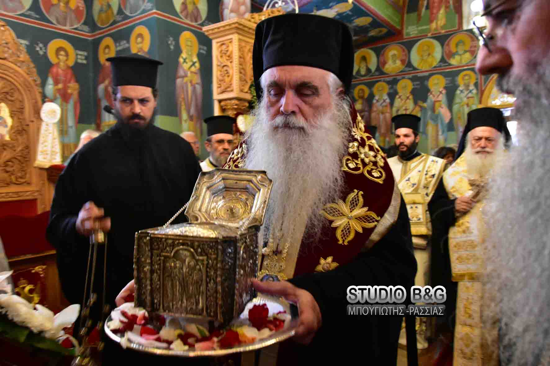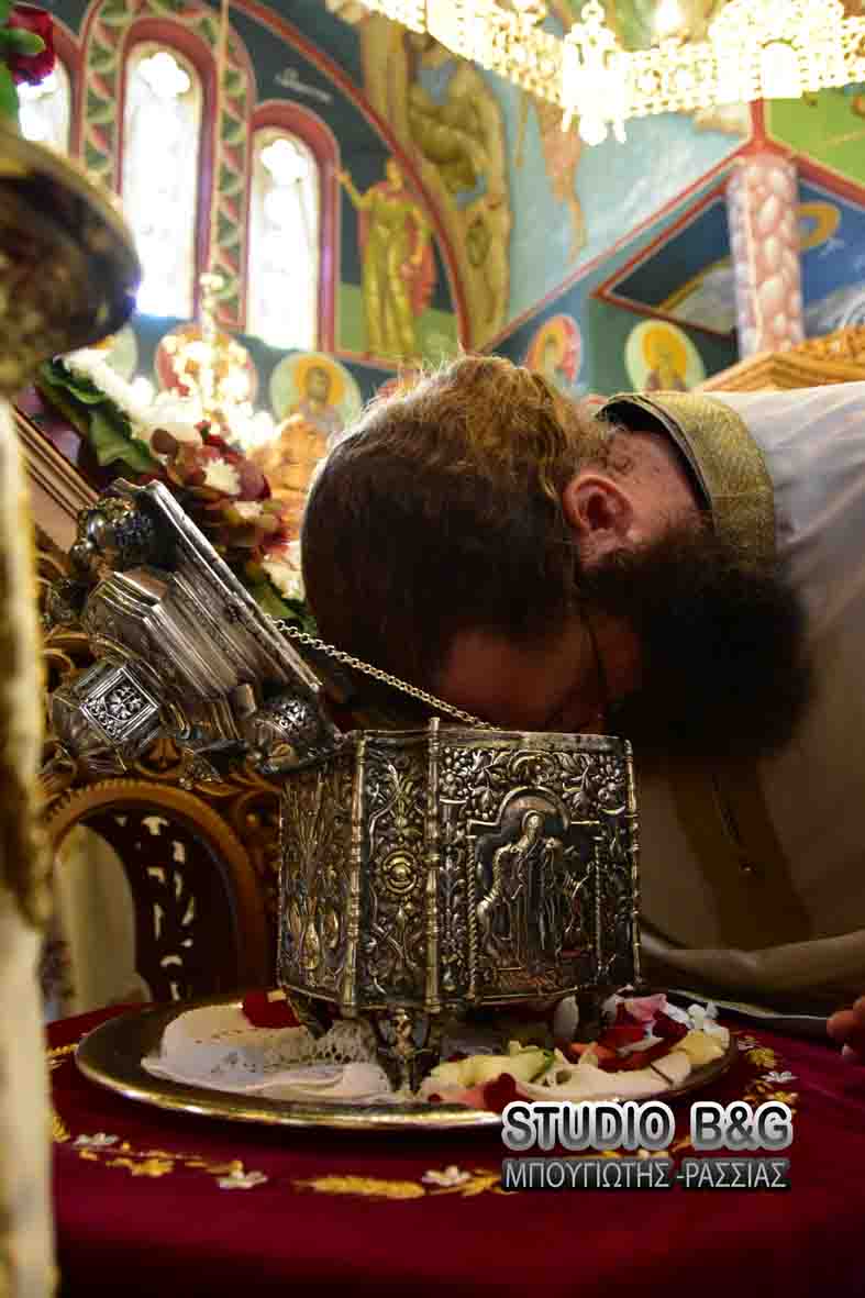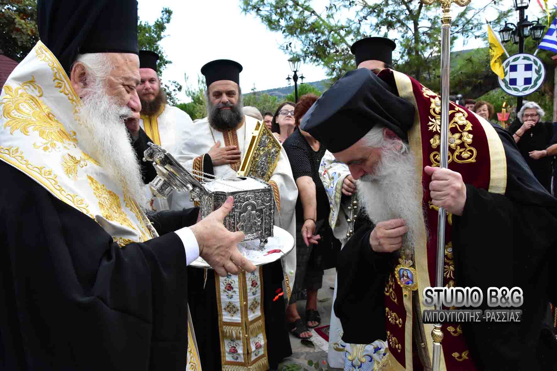 Ο μητροπολίτης Αργολίδος αφού ευχαρίστησε κι εκείνος τον Μητροπολίτη του δώρισε ένα εγκόλπιο. Παρών μεταξύ άλλων ήταν ο βουλευτής Αργολίδος Γιάννης Ανδριανός κι ο αστυνομικός διευθυντής Αργολίδος. Το ιερό λείψανο θα μείνει προς προσκύνηση στο προσκυνηματικό κέντρο μέχρι της 5 Οκτωβρίου ,όπου θα τελούνται καθημερινά ακολουθίες.