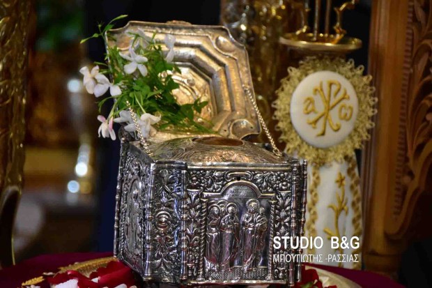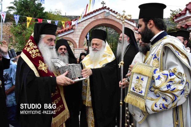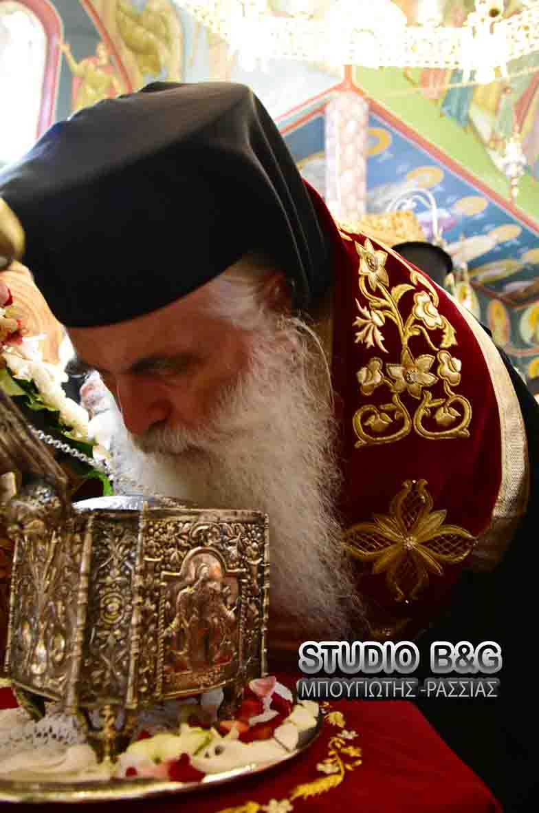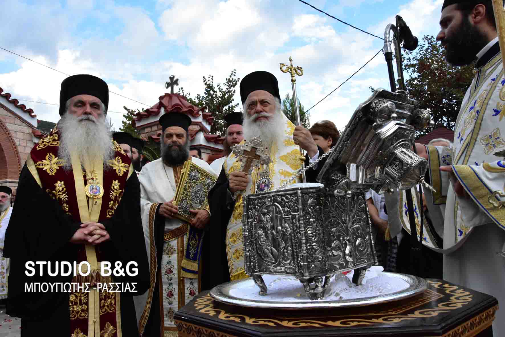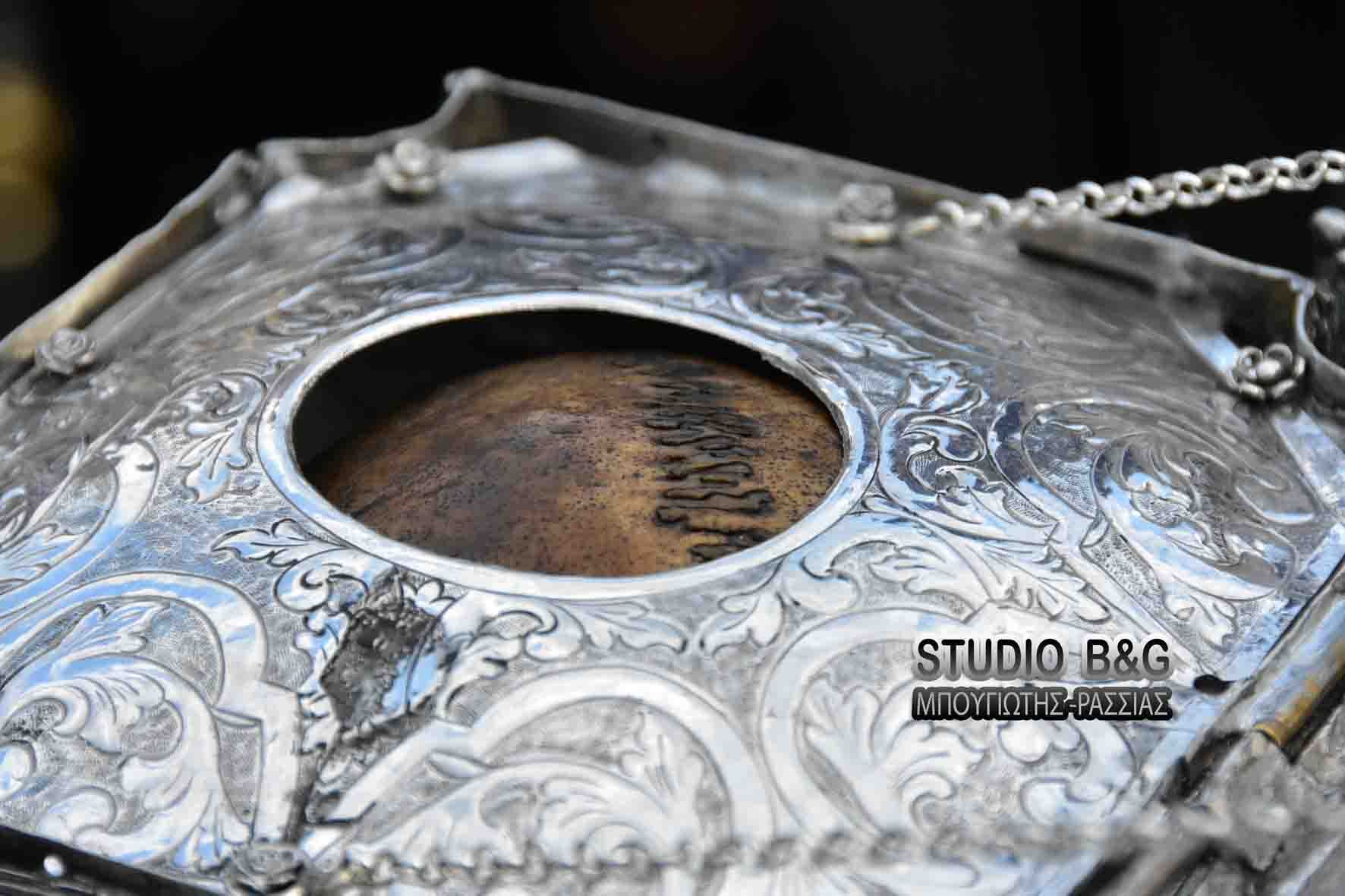 Ο μητροπολίτης Αργολίδος αφού ευχαρίστησε κι εκείνος τον Μητροπολίτη του δώρισε ένα εγκόλπιο. Παρών μεταξύ άλλων ήταν ο βουλευτής Αργολίδος Γιάννης Ανδριανός κι ο αστυνομικός διευθυντής Αργολίδος. Το ιερό λείψανο θα μείνει προς προσκύνηση στο προσκυνηματικό κέντρο μέχρι της 5 Οκτωβρίου ,όπου θα τελούνται καθημερινά ακολουθίες.
