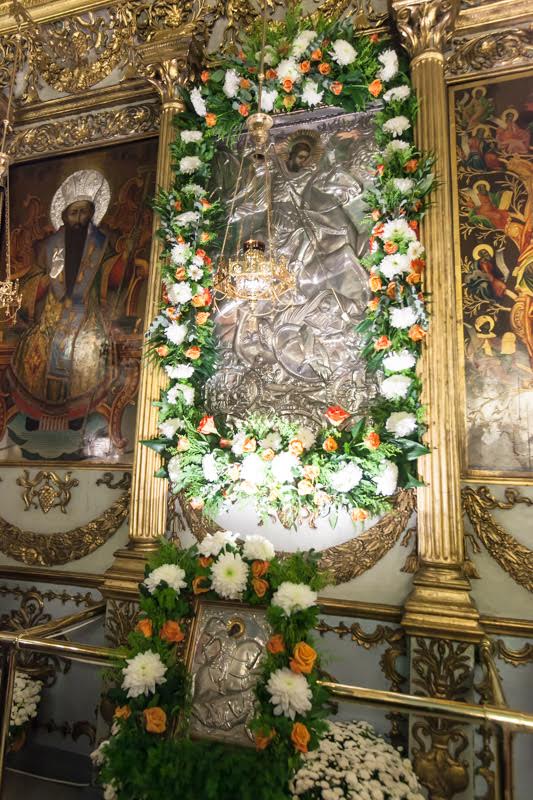 Εν συνεχεία ακολούθησε λιτάνευση της ιεράς Εικόνος του Αγίου, πέριξ του ιερού Ναού.