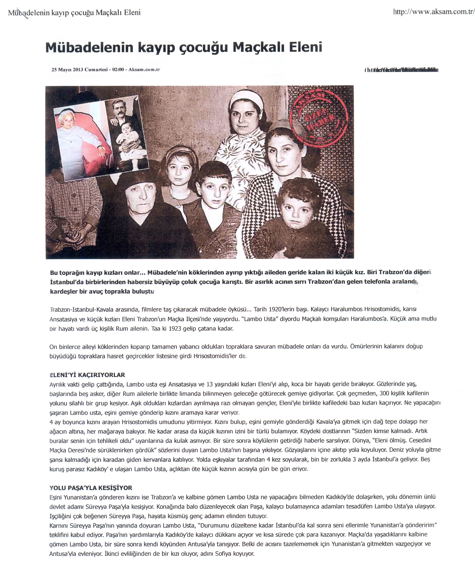 Η συγκλονιστική αυτή ιστορία, (την οποία όταν την διαβάσει κανείς στα τουρκικά πραγματικά συγκινείται), δείχνει για άλλη μια φορά το μεγάλο δράμα των Ελληνορθόδοξων Ποντίων.